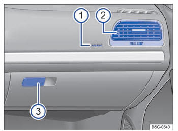 - Ubicación del airbag frontal del acompañante en el tablero de